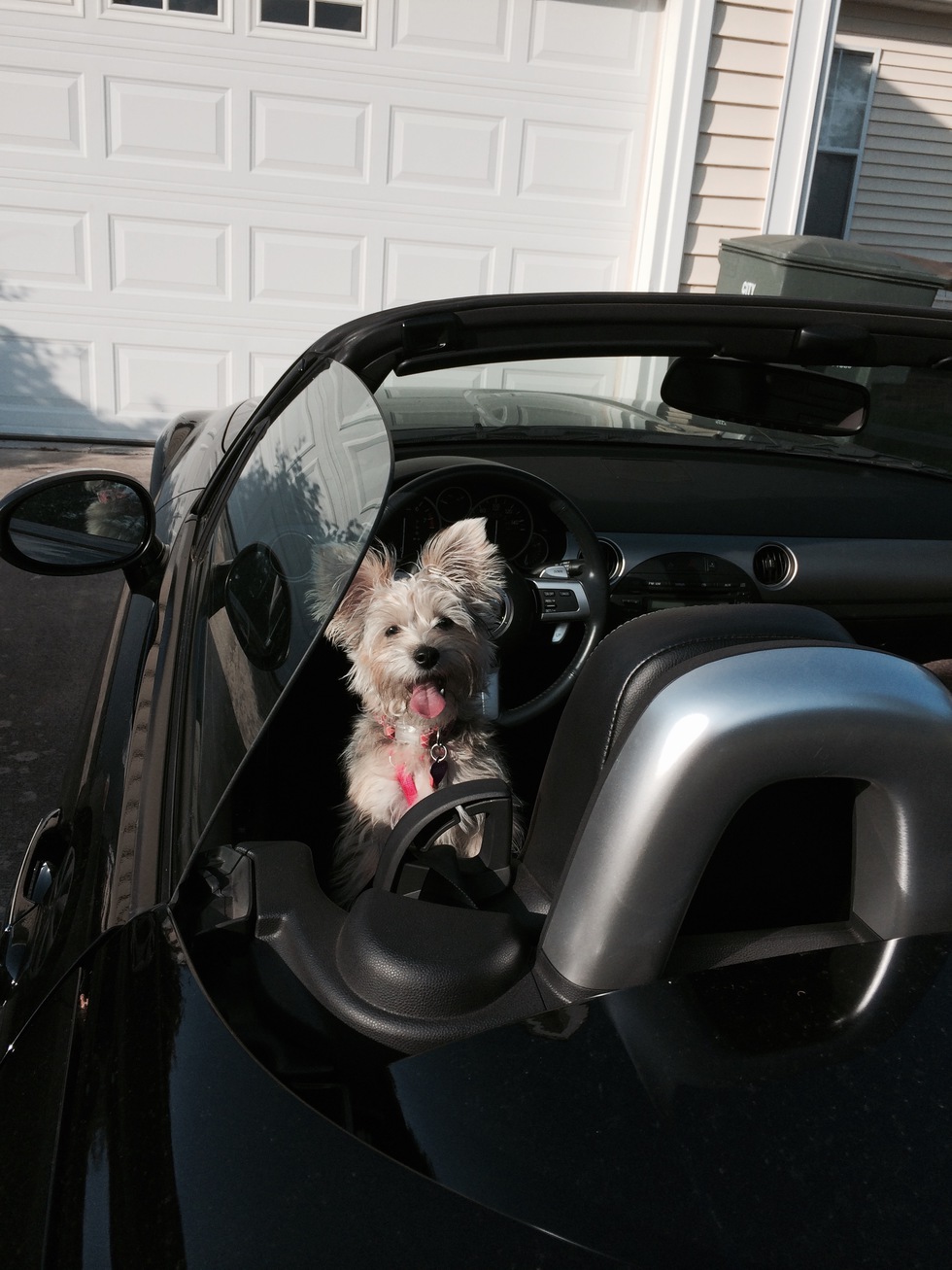One cold January afternoon Penny and I found one another., a man at target was getting rid of his puppies and she was alone shivering in a dirty towel. She will never be cold and lonely again. Her Brothers decided she could stay after three weeks of her zooming around and bothering them. She is smart she is sassy, and she loves her family. Recently we lost our older dog who was our protector her big brother and Penny gladly stepped into the role. She loves convertible rides, the park with her buddy Lucas,carrots, and getting mommy off the couch to go to the pantry for cookies.