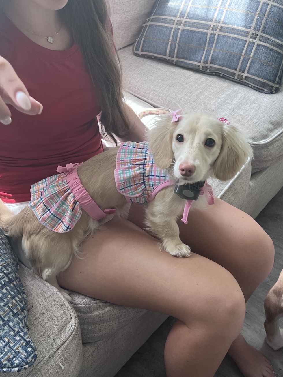 Daisy is my life. She is the sweetest, loyal puppy we have ever owned. Daisy came into our lives a year ago. She is a miniature cream Dachshund . We have raised golden retrievers for the past 20 years. We were looking for a miniature golden. Daisy loves cuddles and loves to play with her big brother Joey. Daisy may be tiny but she thinks she is mighty.