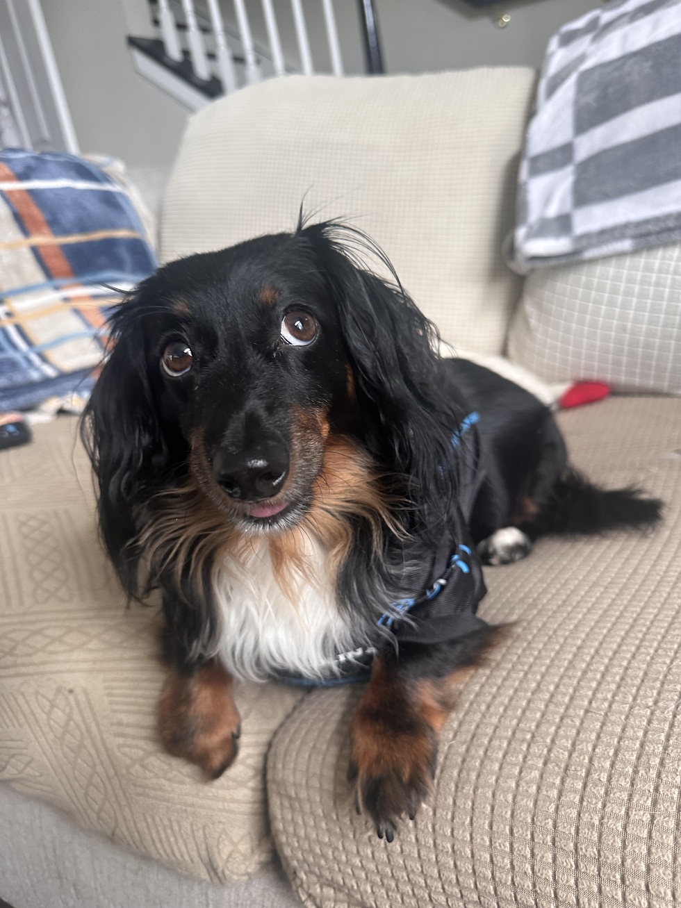Lionel just turned 5 years old and is referred to as our Bernese Mountain doxie 💙 He loves wearing his Carolina Panthers jersey on Sundays, cheese, barking at anything and everyone, having the zoomies, and sleeping the day away. 🐾🦴
