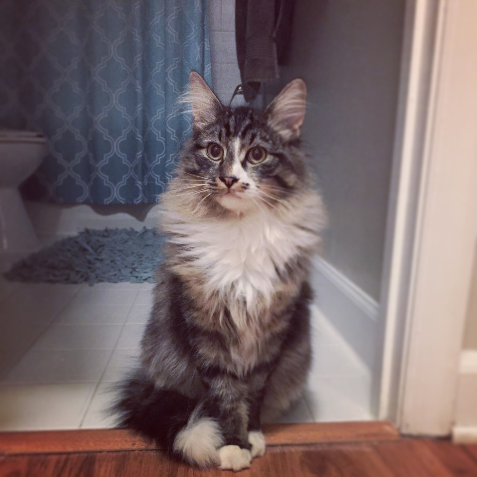 Your Pet's Story or BioThe week I was packing my bags to relocate to the Alexandria area last summer, Max was found in the engine of someone's car who happened to pull over into my driveway. I heard the woman in hysterics at the same time I heard loud screams coming from an animal. I ran outside and saw a kitten the size of my hand being pulled from under her hood. It was a sign that Max was meant to come on this journey with me. He had a broken bone and a tear in his shoulder but nothing that some love couldn't fix. Max grew into a beautiful Maine Coon and has become the best road trip companion!