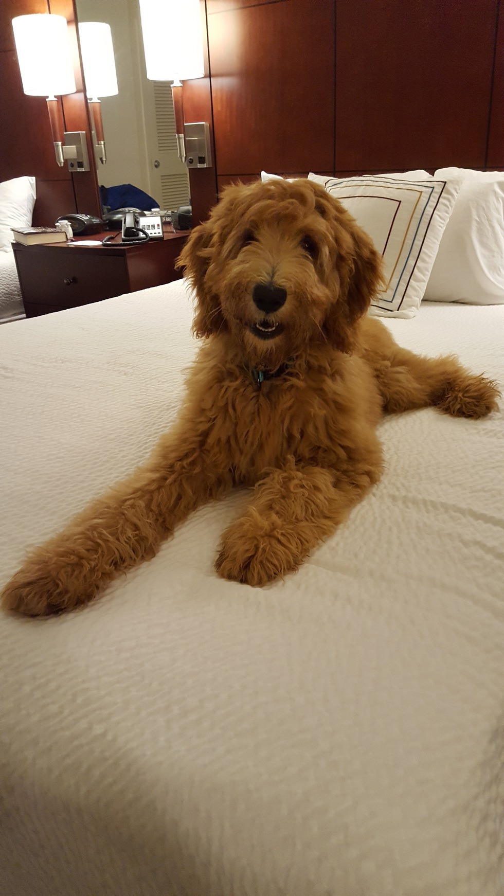 Your Pet's Story or BioWe had lost our beloved wire haired fox terrier to kidney disease recently . Our Alexandria home felt hollow and so empty without her. We remarkable choose to have a Goldendoodle pup from Alabama to become a member of our family. Having a 5 month old puppy that grows by the day has been nothing less than a grand adventure! She is expected to double in size or even larger! This wonderful dog continues to surprise us while bring us a sense of joy.