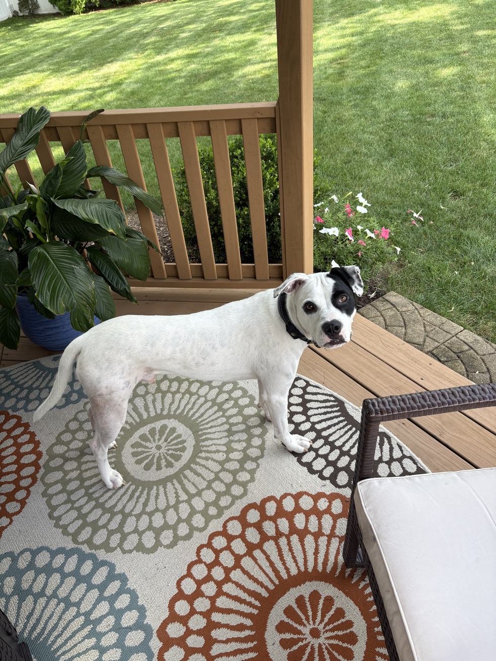 Jojo (formerly Joker) was rescued from a high kill shelter in Georgia by Blues City Rescue in Tennessee. I became his "mom" in July, 2025. He is a great guy, about a year and a half. Jojo resides with myself, my husband, and two canine sisters, Dixie and Poppy.