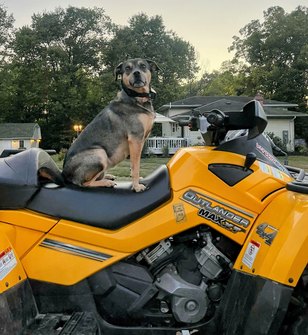 Annie was adopted from a shelter in Grundy, Virginia on a family ATV riding trip. The shelter was located on the ATV trail and who could ride by without stopping to save a dog. She was a calm quiet 6 pound puppy but as soon as she was out of the cage and in the parking lot she was full of spunk! She rode on mom’s lap back to camp and has been the first one to jump on the ATV ever since. She will not let anyone go without her. Annie is the boss at the Muhlenkamp household and does not mind telling you what she thinks. We love her personality and her love for life!
