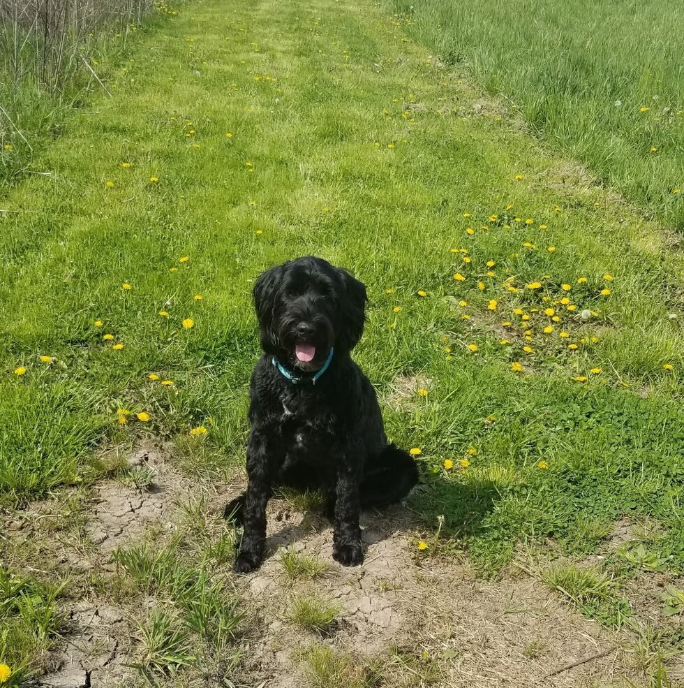 Moose our Portuguese Water Dog is a lover of everyone. He is three years old and full of energy. He spends his days playing with his humans, visiting his favorite neighbor dogs and taking lots of naps at everyone's feet. With his favorite pastime being teaching our one year old how to sneak him treats.