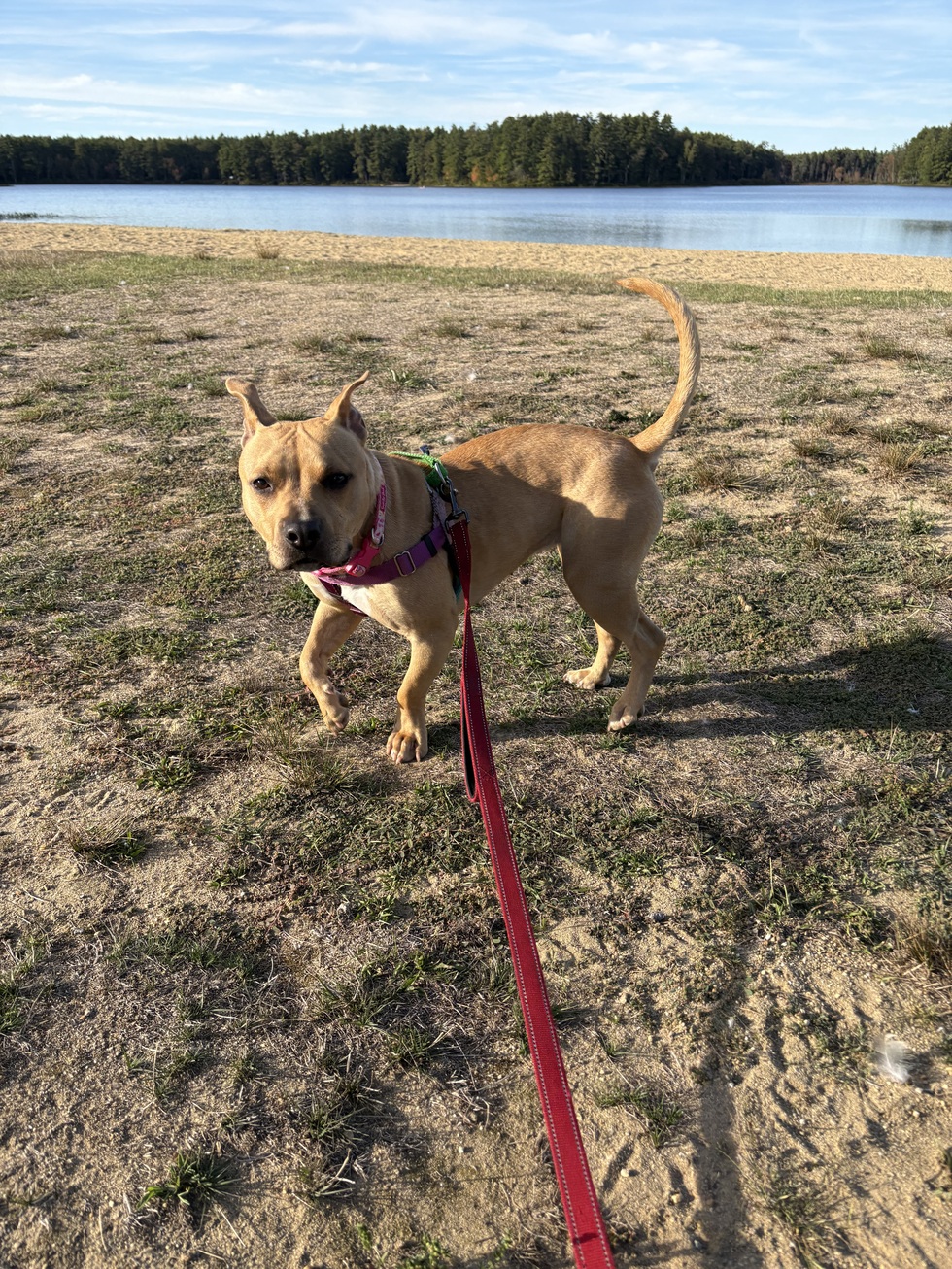 I adopted Pancake last summer from Crops and Flops Rescue! Why the name Pancake? Because her human sister named her and she’s the color of perfectly cooked pancakes! My top two favorite things about Pancake? Her adorably cute front paws and how they stick out to the side and when she “flap jacks” onto her back for belly rubs! Pancake loves to stand under my feet when I cook, steal her human sister’s stuffed animals, go on car rides and snuggle up under a blanket. Pancake loves everyone she meets! Pancake loves to visit the local hardware store because she’s kinda a big deal there! My daughter and I are so fortunate to have such an amazing dog who loves us unconditionally!
