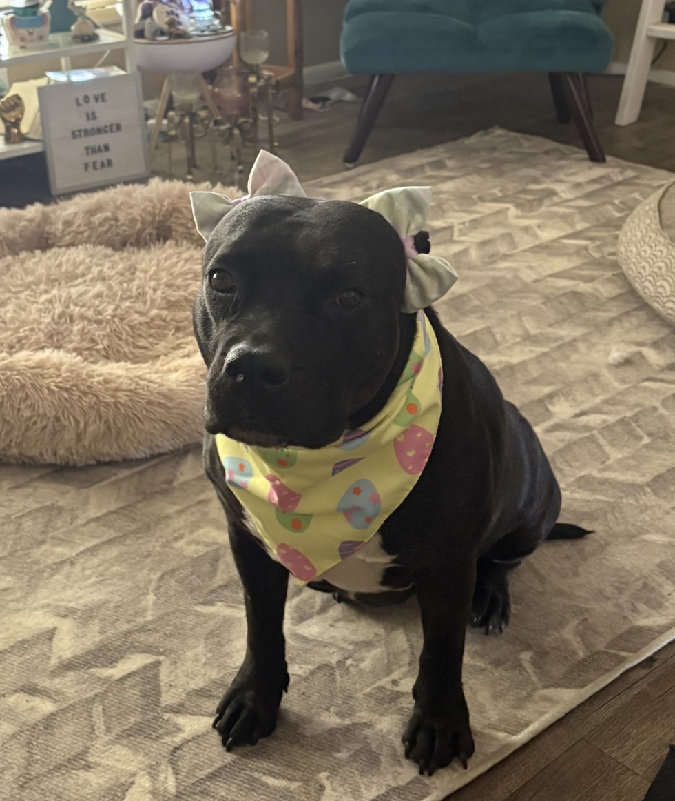 Emery was rescued along with her 3 babies by a local shelter in Texas back in 2021 and then rescued by Near and Far Animal Rescue. I saw her profile and knew my broken heart needed her! Near and Far transported her to me from Texas to Utah January 4, 2021 and it was the best decision I’ve ever made. She is sweet and sour but mostly sweet. She has an amazingly patient and tolerant demeanor and has been asked to be a therapy dog many times. She keeps us on our toes in all the best ways! We adore everything about her.