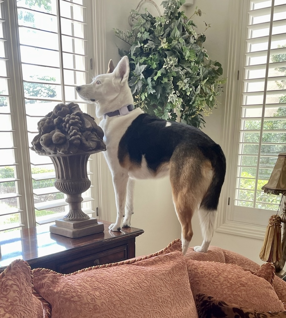 Sweet Daisy Blossom is a rescue from Southern AZ and now lives in a Scottsdale Treehouse- from which she can’t escape without supervision.