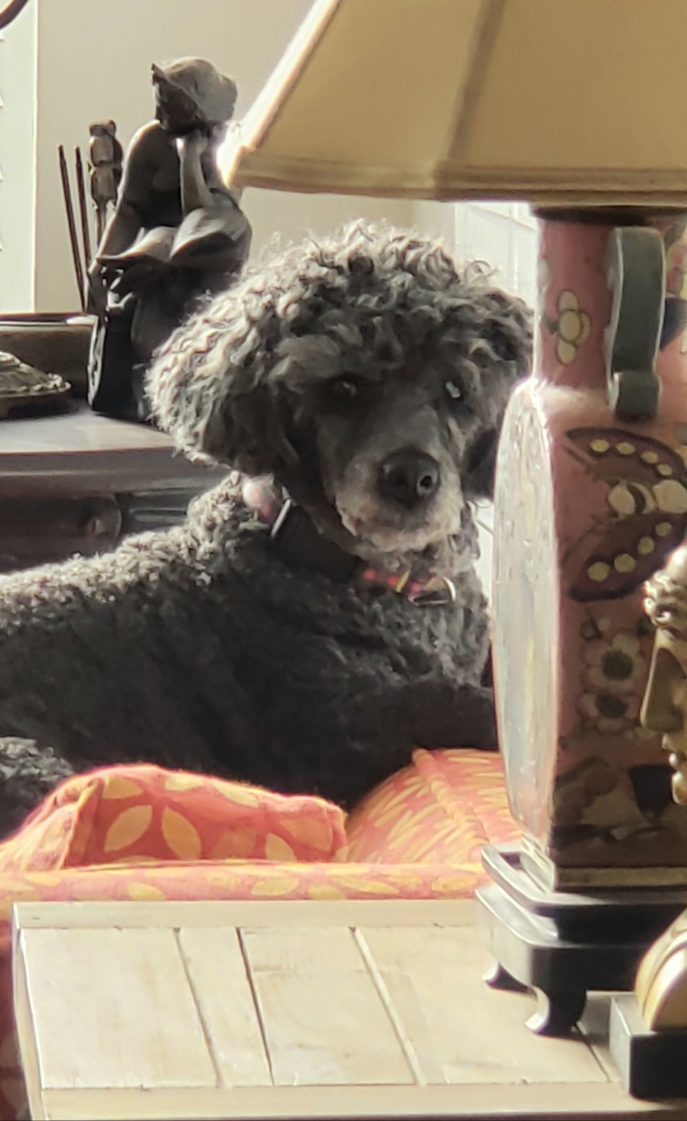 Mr. Poodle loves his alone time and cannot understand why we are home all day now. He loves sitting in his chair looking out at the squirrels. He wants us to go back to work ASAP.
