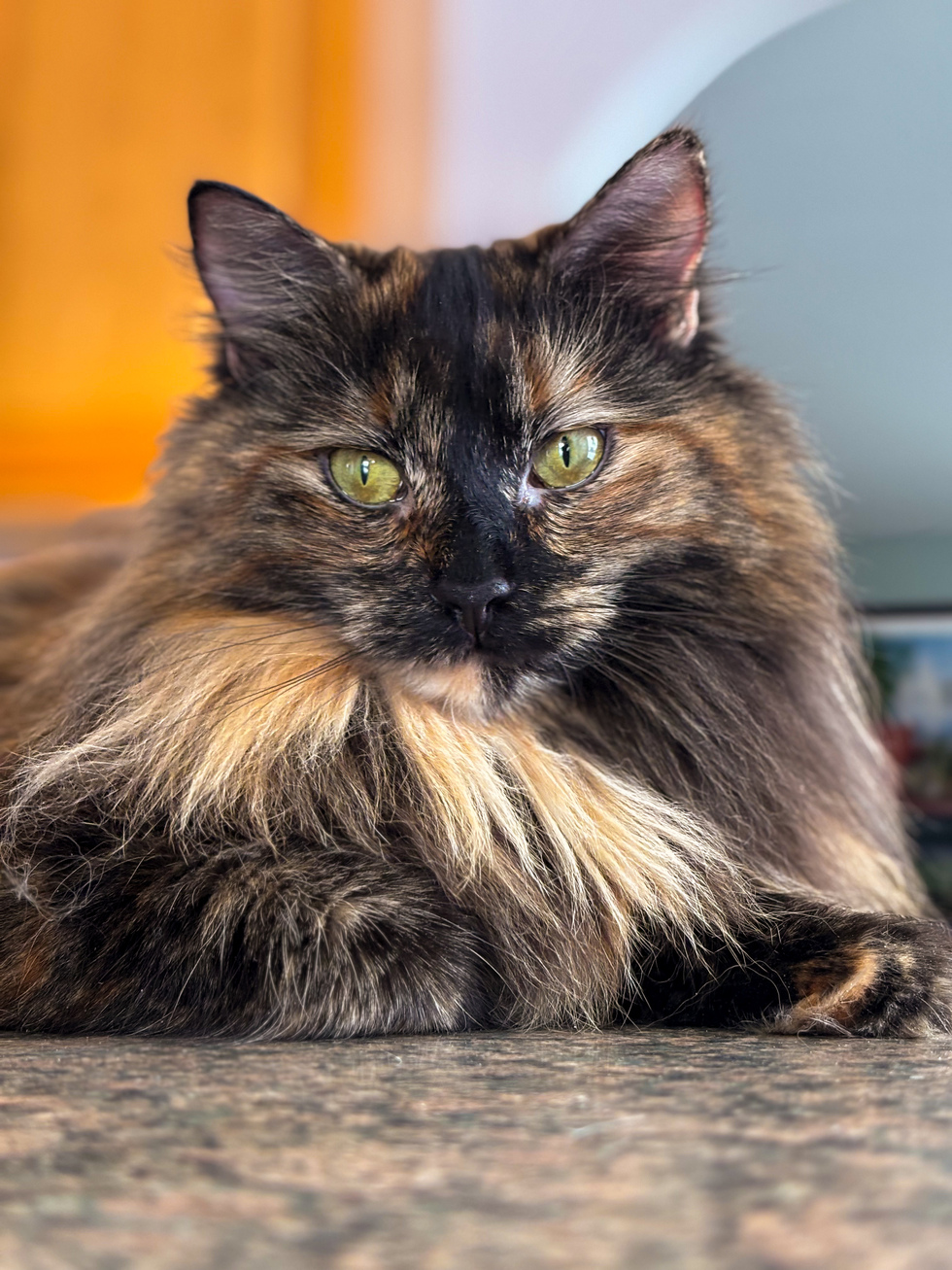 I was rescued locally after being found under a shed at just 5 weeks old. Since then, I’ve grown up visiting the groomer’s, where I loved spending my days greeting clients. Now I’m a confident, sassy girl enjoying life to the fullest alongside my feline and canine friends!