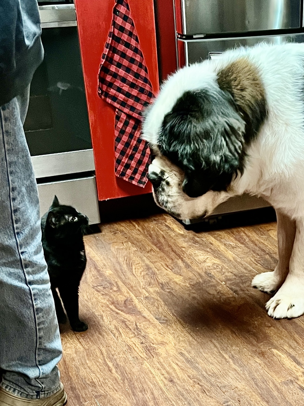 Our Saint Bernard, Charlie Bucket, and our cat, Bill