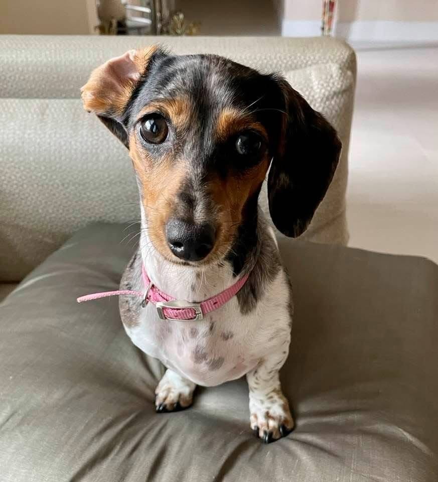 Stella came to us after trying to adopt a doxie. It was during Covid so we were not able to find one. After lots of due diligence we found d Darling Doxies in Homestead Florida. When Stella was born we visited her for six weeks before she was old enough to come to us. Since it was during Covid our visits were in our car when she was brought to our window and handed to us to love. Finally in week 8 she came home. She is our fourth doxie…..we love her fun personality and loving ways.