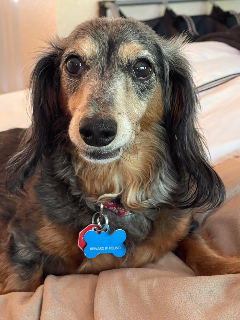 Sweet Sophie came to us from DRSF last December, and she has been such a gift. Despite a bout with IVDD and being diagnosed with Cushing's since joining our family, Sophie is living her best life. Her favorite pastime is chasing lizards in the yard, followed closely by riding in the car with her head out the window and ears flopping in the wind. She also loves napping, treats, and snuggling under her blanket at bedtime. She has learned to walk on the underwater treadmill thanks to her amazing physical therapy team, and recently took her first flight to vacation in Arizona. Over time, her goofy personality has come out and we love her so much! Every day she reminds us to live in the moment, roll with the punches, and enjoy the little things. Thank you DRSF!