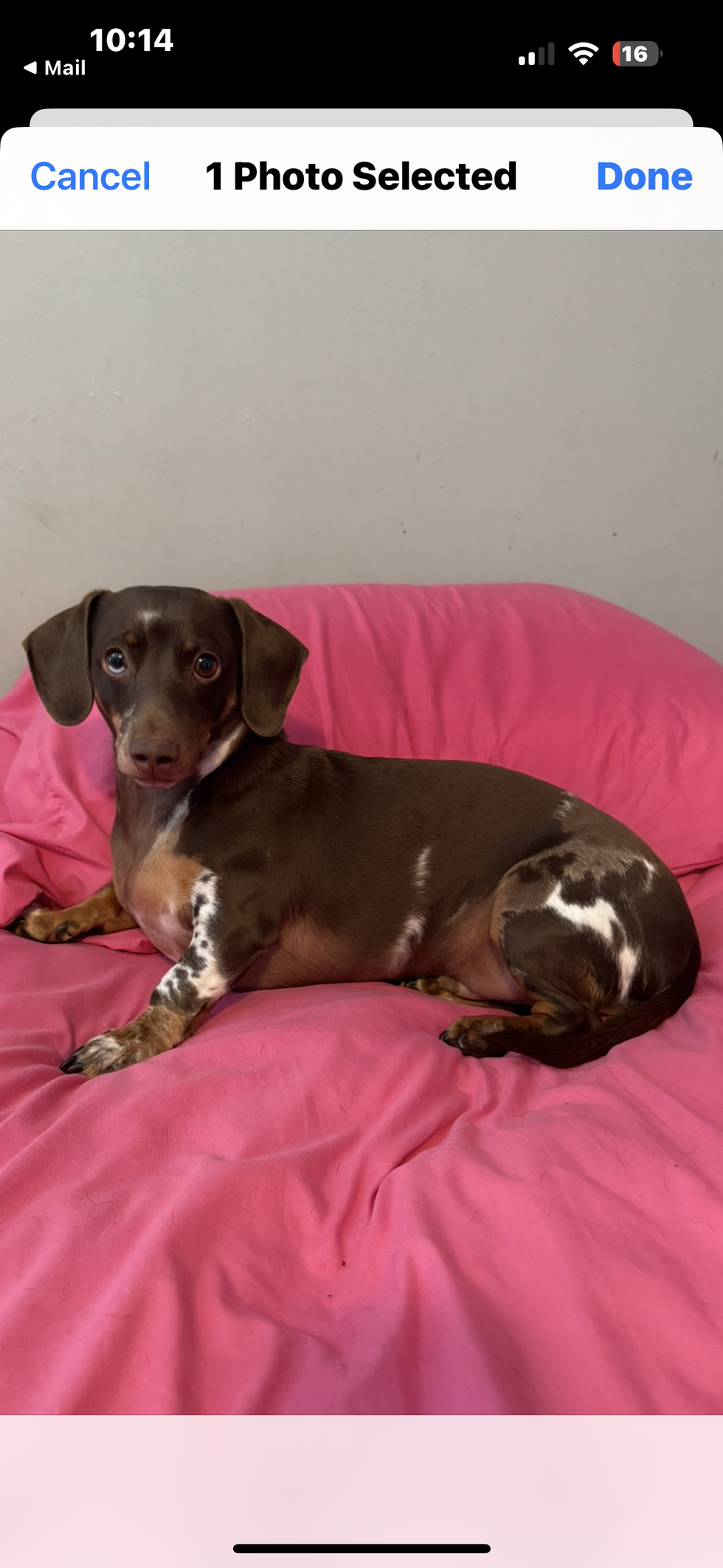 Brock’s original owner passed away unexpectedly last October. When he came to live with me, his name was Rocco. Being a DAWGS fan, I renamed him Brock Bowers. He’s very social and loves meeting new people and pups!