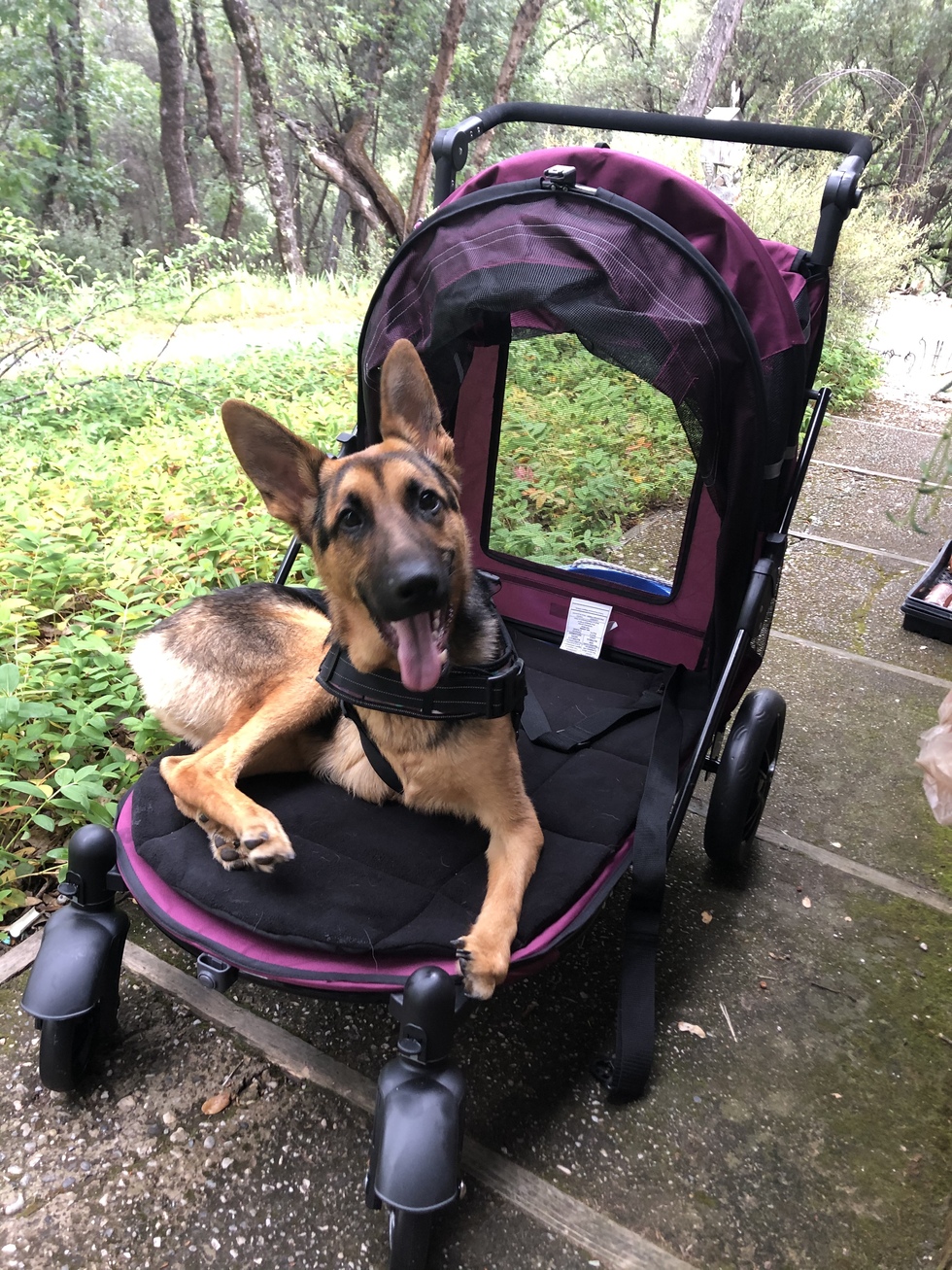 Pet's Story or BioRoo was born with both front legs deformed but once one was amputated he was able to get around better. He has a small cute front nub left that he uses like a kick stand (: I just adopted him a few months ago from the SPCA and The Dodo did his story! He is a special German Shepard and I just love him so much! xoxo