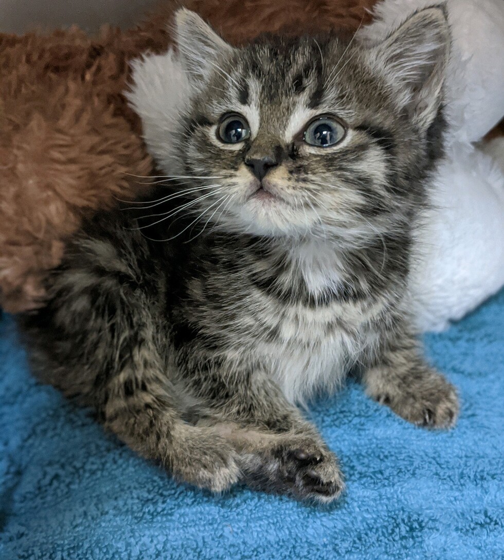 Pet's Story or BioBiscuit was abandoned in a box along with several other kittens. Her personality and big bright eyes immediately made our hearts melt. She is the sweetest manx girl, that is partially paralyzed in her back end and fully incontinent. But Biscuit has no idea she's different. She is full of life and love, and we adore every bit of her.