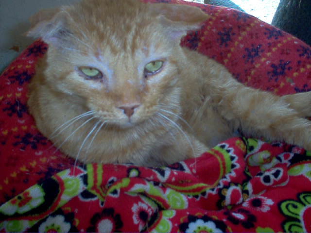 Arthur was living on the mean and hot streets of Tucson Arizona at the age of nine years old. You can tell by his tattered ears and scars that he was struggling to survive. He also was FIV positive and diabetic. He was smart enough to go into a trap at which time he was rescued and placed at the county shelter. He faced additional challenges there of getting out alive. Luckily, I stepped up to adopt him so Tucson Cares agreed to tag and rescue him. He is the smartest cat and so affectionate. I am so glad I took the leap and adopted him and brought him to Colorado.