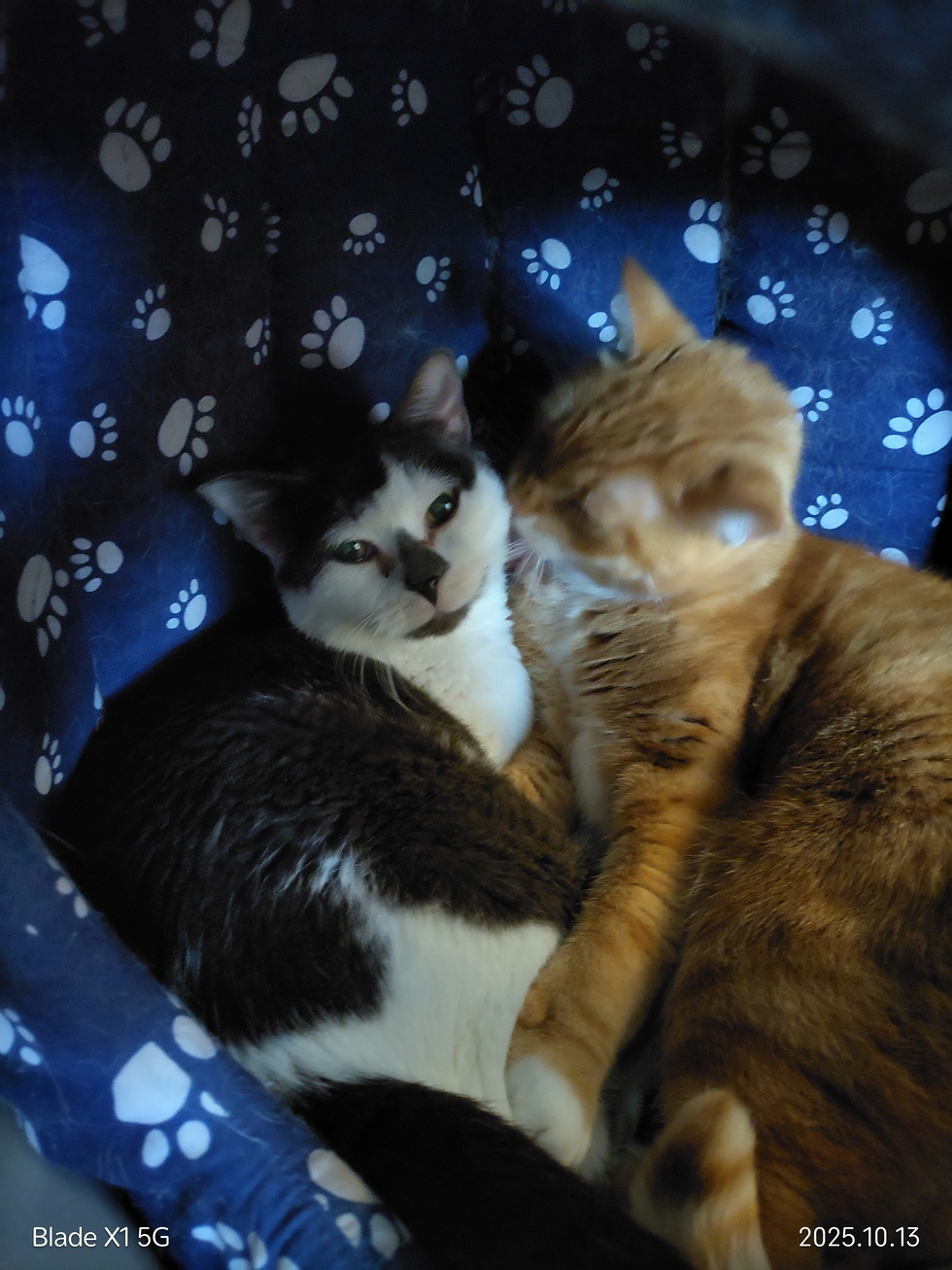 Lexy is my special 13 yr old cat that has just needed a lot of love and attention, away from veterinarians who think they can't live a quality life with a disease us humans do. She has been diabetic 3 yrs, and ever since I knew it and took her to the vet, her brother has been by her side every day, every test and shot time. He really cares about her. They are bonded, both rescues and with physical problems. Lexy is a high dose kitty who can go from what "I" say is low of 7 Units up to 18 or down the ladder and up again. She has a playpen where the cube in the photo is. That cube is almost as old as her, and she has torn it up and I've fixed it over and over. Her brother Peanut likes to go in and help her take a bath after eating a meal from her feeder. We are on feeder #4 since this all started. She attacked the first few, and then we had a great one, and it recently joined the rest. Finally finding one like it, we are now using a petmate (lifesaving feeder) which has 3 settings for food and 1 for close no food. Lexy has a new one that we hope will work for the long run. She seems not to attack this one because it's not as deep and she can get to the food easier. She's my baby and will always be a very special cat, I think any of us who have diabetics understand they are special, so please if you can to support the cause, Give Lexy a vote so we can keep her in the calendar another year. We don't have many people in her life who can vote, but DCIN is such a great cause, it's always something we look forward to when this season comes around. Thank you for all your support. We don't know what we would have done without it! This photo was taken this month...