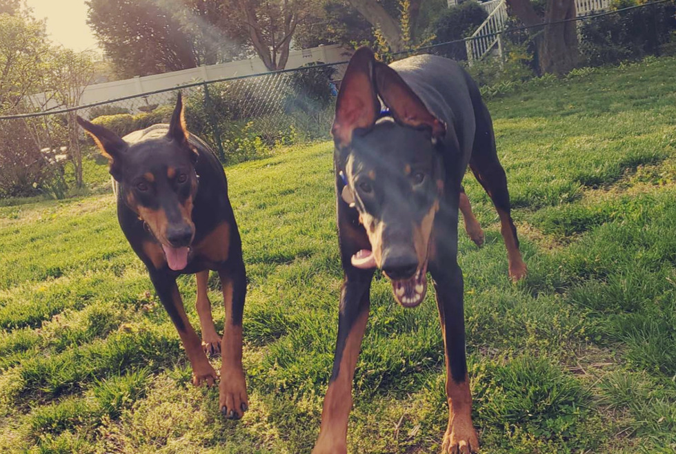Ace and Delilah are a doberduo from Queens, NY! Delilah is a DRU alumnus. She and her brother Ace enjoy running around the yard, playing tug-a-war together, and lounging on the couch at the end of the day.