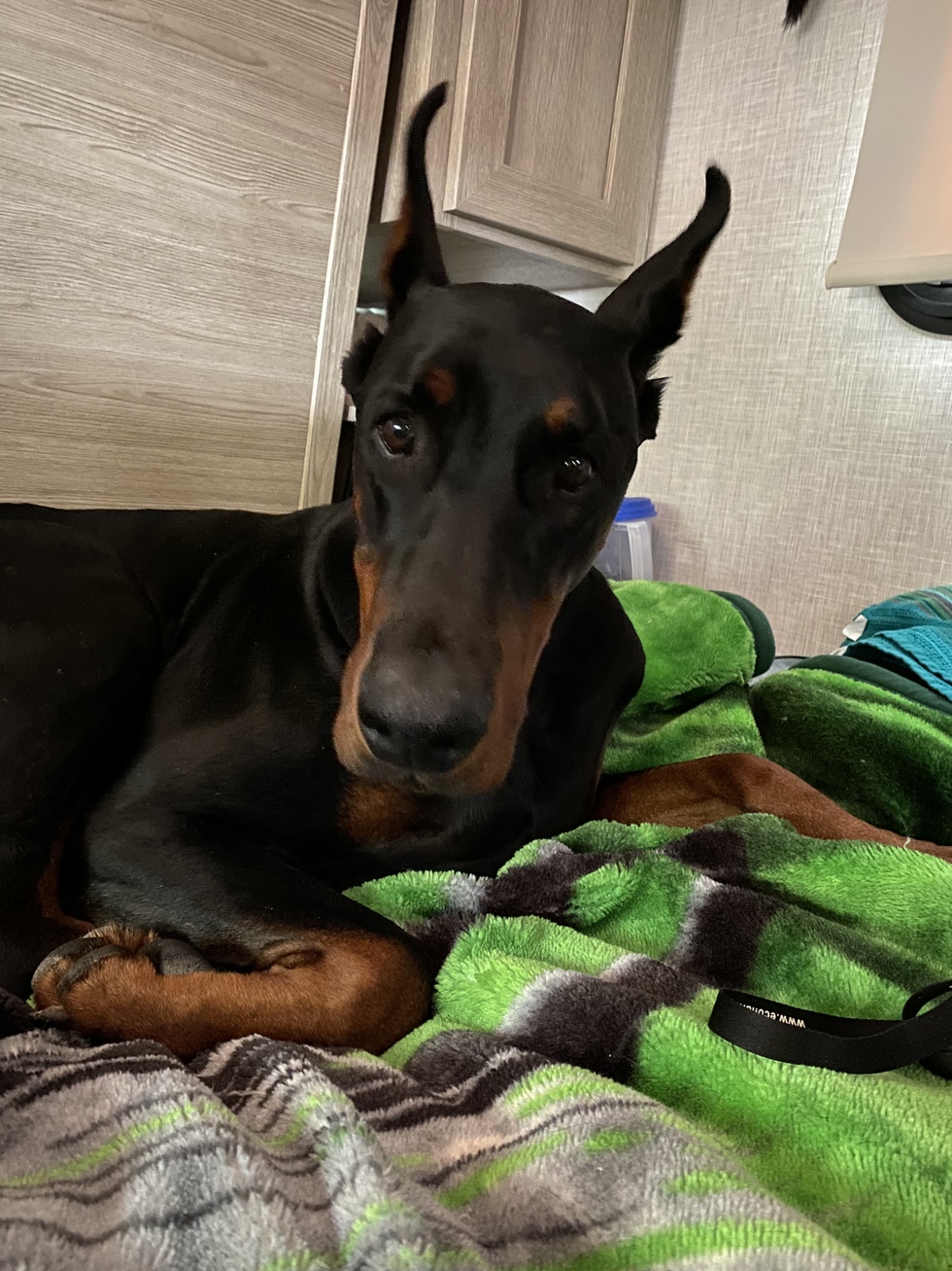 I adopted this wonderful dog in December of 2018. Since then we have traveled thousands of miles together and now live in an RV in Arizona! Anything is possible with a Doberman!