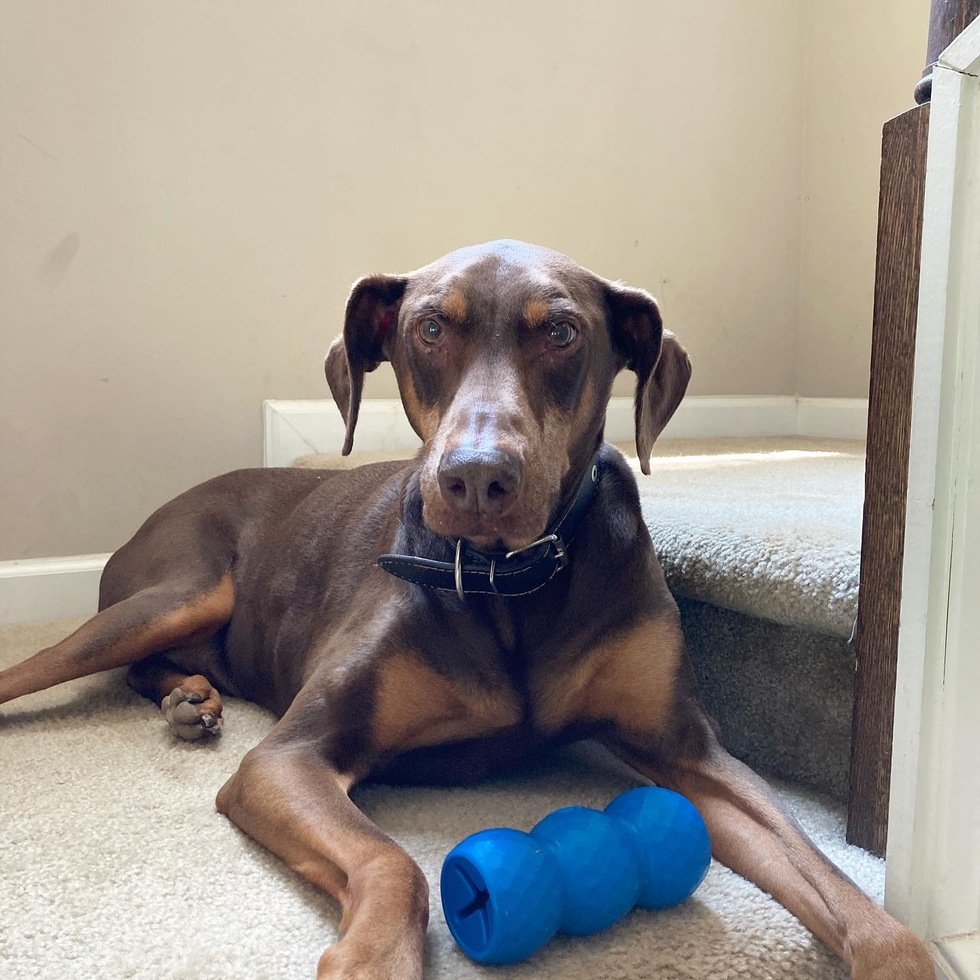 Charlie is a 9 year old red Doberman that was adopted from DRU in 2013 by Kyle and Laura Fine. Known as "the spinner" Charlie has a tendency to run in circles. He loves going for walks and relaxing in the sun.