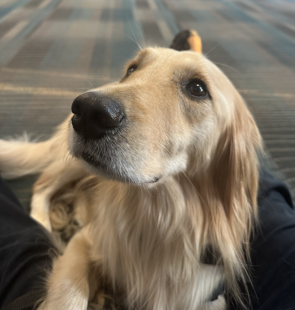 I have been working with my human, Steve, for over three years and we have had so many adventures! I'm a super good boy at home, at work, in the car, and even on airplanes to all the places we go while he is working. I try to bring joy and comfort to all the people we meet, making new friends along the way and guiding Steve through experiences that used to be difficult for him. I really want to be dog of the year because I try my hardest, every single day, to make the world a better place and be the best service dog I can be.