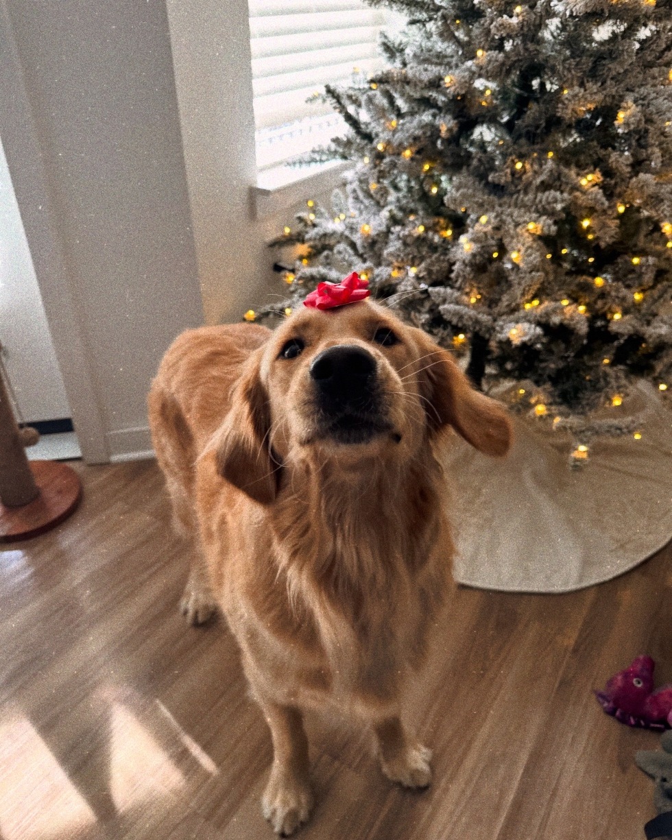 Not only do I sniff butts and eat things I shouldn’t eat, I shed and I roll in leaves that tangle into my hair. My dad always pets me when I’m doing these silly things, so it keeps me productive. I’m a lover, and the biggest goof ball of all time. My dad saved me and I saved him. I’m also a hard working service dog, I work with children in the behavioral health field that really need the emotional support. When I see myself in the mirror I can’t stop but stare, cmon, I’m so handsome and loving. I also have a tree! Tis the season!