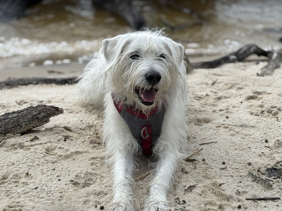 I am a boy of humble origins - I was found rooting around in the dumpsters of a Walmart parking lot in Alabama, and found my way to my forever home via the humane society. I am fiercely loyal to my people, and as a half Great Pyrenees I take my guard dog duties very seriously, even when that means breaking holes in the blinds to keep a watchful eye on passers by. Although I am quite fearful of the ocean, I have been known to show my appreciation for the beach by stealing and gnawing on seashells. I don’t mean to boast, and generally don’t let people in on this information, but I can read and am well versed in not only English, but also Latin and French. Most importantly, I am whimsical and scruffy and according to the people I meet, very handsome.