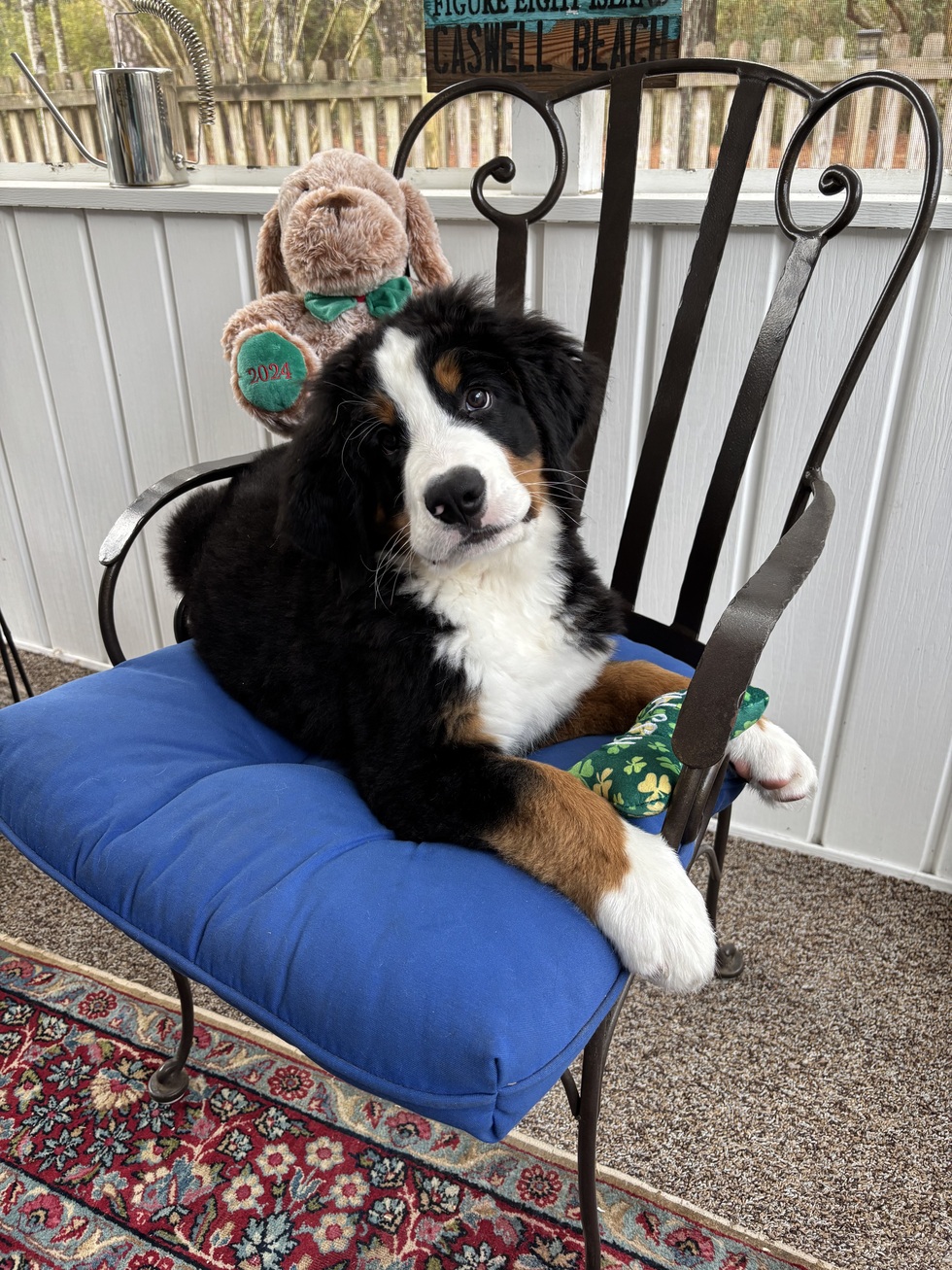 I am an Irish black and tan Bernese Mountain Dog named after my favorite beer! “Guinness “ I am very cute and get away with everything! My mom is a pushover when it comes to me. I am the master and she is my favorite toy!