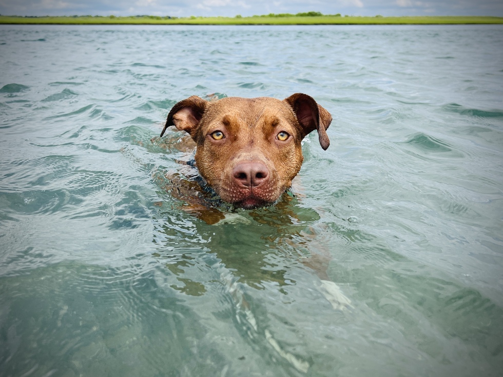 Gator is a rescue from Brunswick Co Animal Control who healed our broken hearts after losing our previous pup, Doc. He’s a great boy who really enjoys the water, just like us. He absolutely loves when we get the cast net out so he can chase the bait back into the water. He’s our favorite boi!
