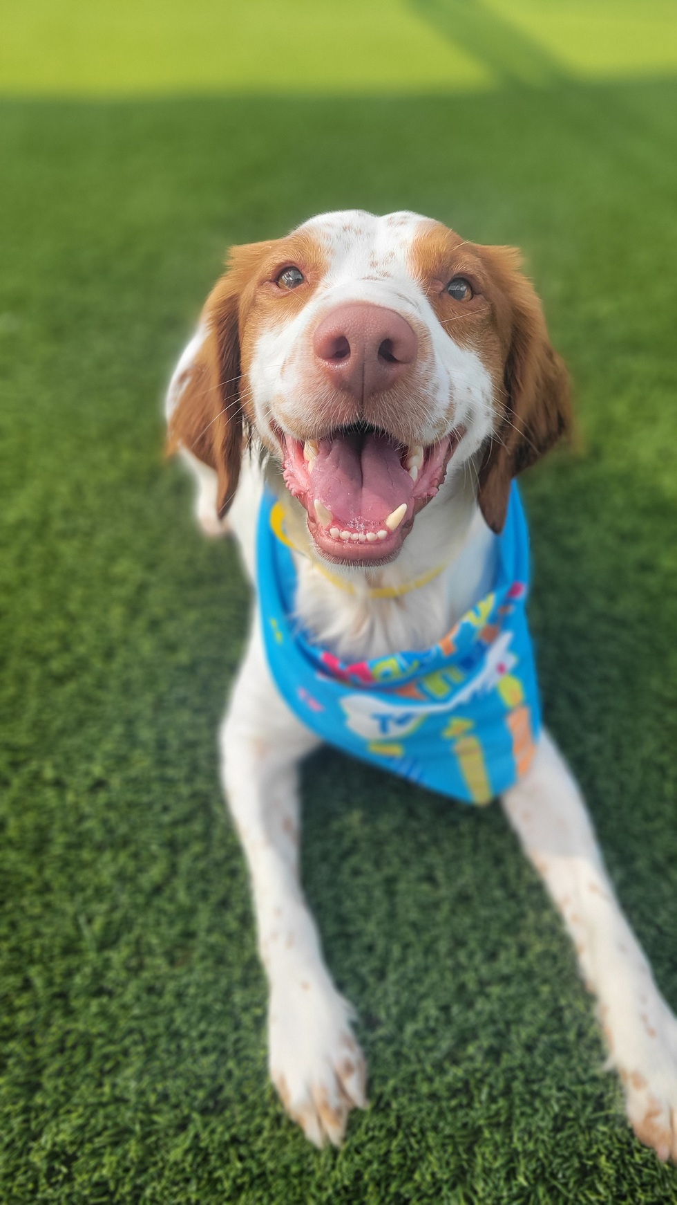 Stevie Ray (After Stevie Ray Vaughan) is a three year old American Brittany. He loves children and wanted to do something to help the young patients at Riley Children's Hospital.