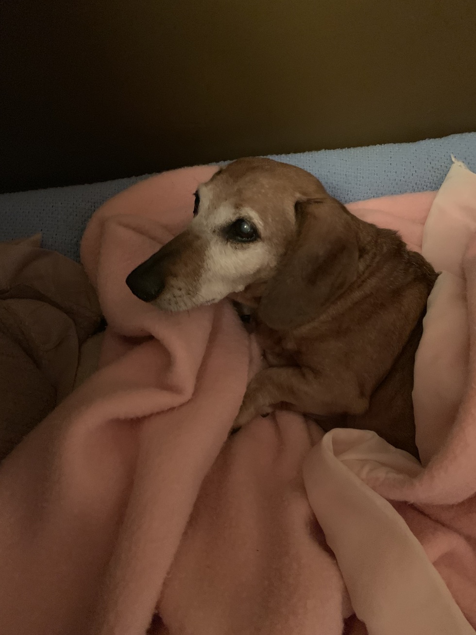 Kobe was my soul dog and best little companion. He was my constant shadow and always there for me. Kobe comforted my mom in her last months, taking naps with her. And he comforted my mother-in-law in the nursing home. He even did a virtual stay at the Sausage Dog Hotel, in England during Covid. I lost him at 18 years, 2 months in April, 2021. Miss him every day.