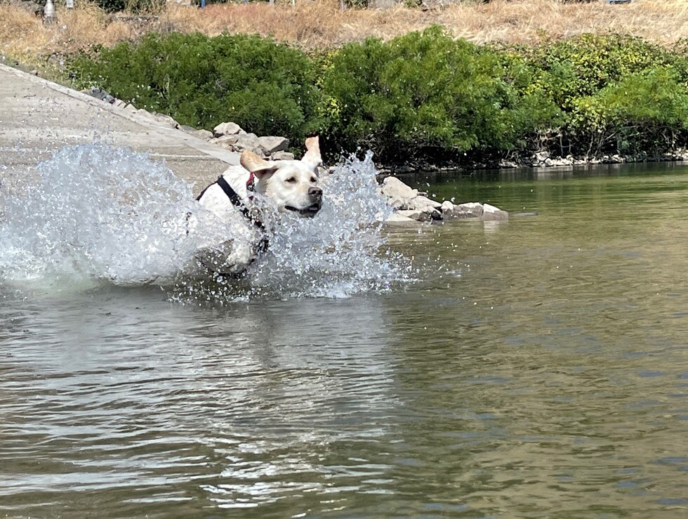 MAGGIE THE MAGNIFICENT! Maggie is 6 years old and became part of our family 4 months ago at which time she learned to swim. Sad that she never learned to swim before, but since joining us she's in the river daily - fetching the tennis ball, stick or frisbee. When not in the water she's out meeting all the neighbors and their dogs - never met a dog or person she didn't like! Life is good!