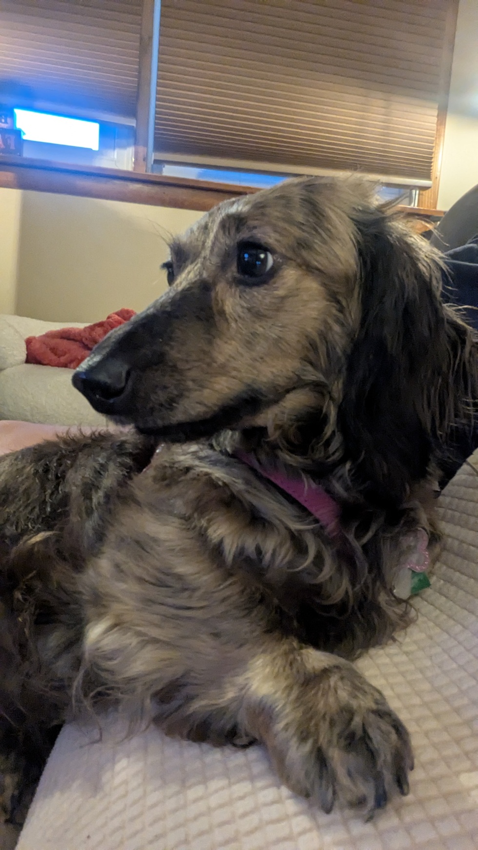 We just adopted Kammy in May after we lost our 16 year old doxie. She's been a great addition to our family!! Quite the personality!! We love our snuggle bug!
