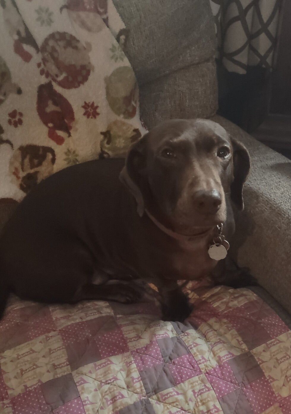 Coco is definitely daddy's girl. She follows him all over loves it when he's working in the garden because she can eat the cherry tomatoes. When it's time to eat coco goes outside and waits until the bowls are filled and than two taps on the window and she's running in the dog dog for dinner.