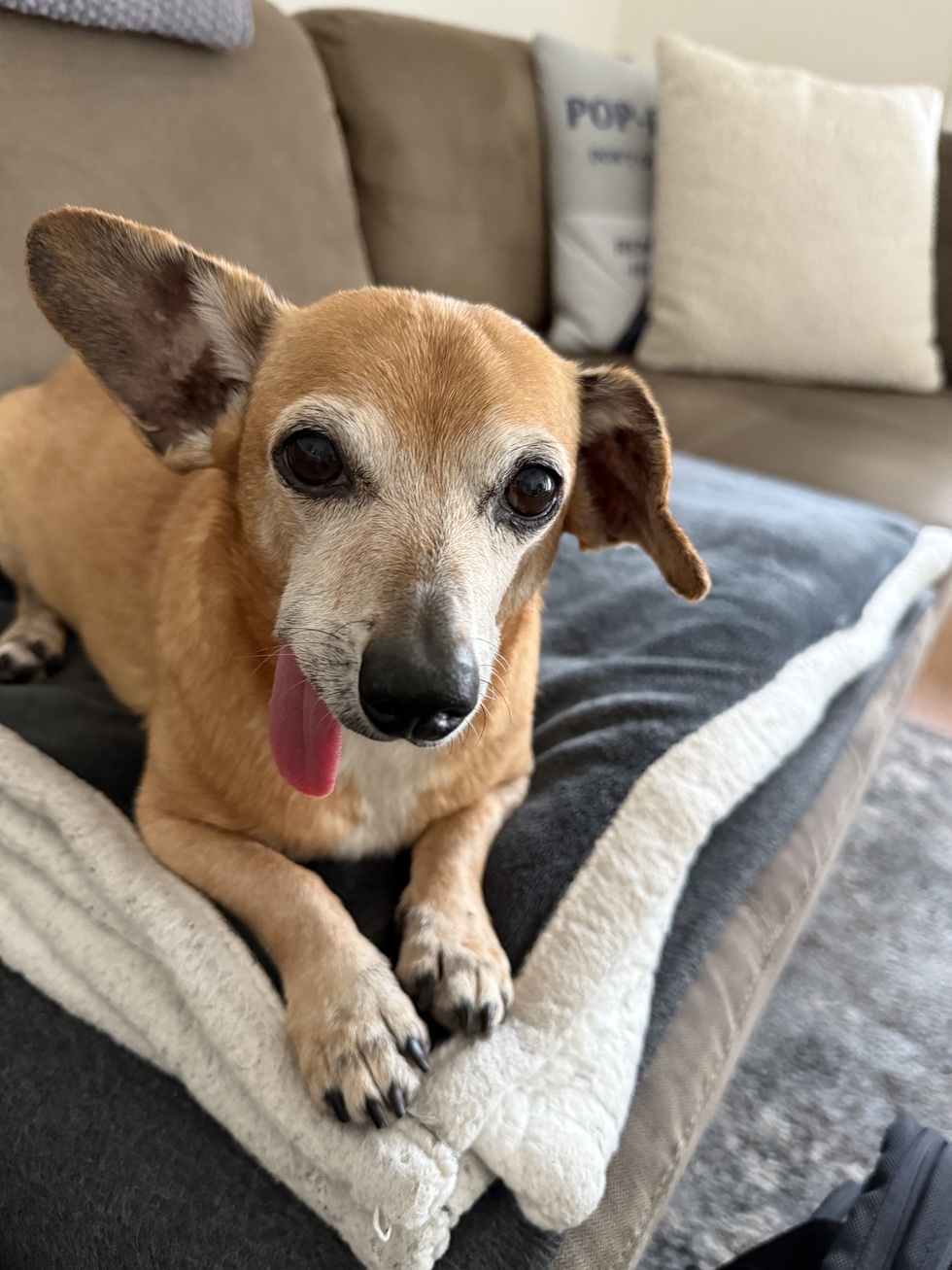 Look at this handsome dachshund mix, Mylo. He was abandoned at age 11. Found by animal control, who researched to find that his family moved and left him behind. He needed oral surgery. He had all his teeth removed (all infected) and his large fistulas fixed from where his bone has turned into mush. He is so mild and easy going. You would never believe he was out alone on the streets. He loves people, children and all dogs and cats. From being homeless to hoping to be on the DRBC calendar would be a dream come true for him. Thank you for voting for Mylo.