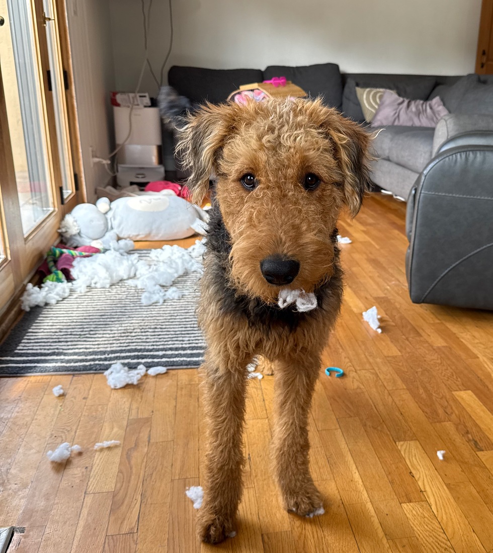 Mater is the dreamiest of pups because he's never had a bad day. The dude finds joy in absolutely everything he does. He's never met a stranger and is friends with every 4 legged and 2 legged being he meets. He goes with the flow, loves to run, romp, snuggle, and as pictured here: get into a little trouble.
