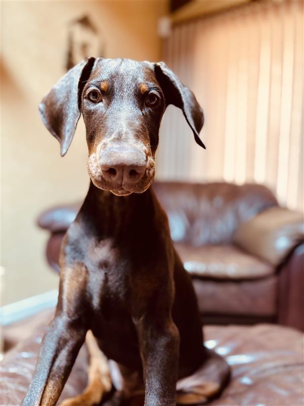 Blaze was rescued from a litter of twelve and came to the Doberman Rescue of New Mexico with his two brothers, Mack and Tsar (Diesel). From the start, he’s been full of personality and unstoppable energy. Blaze loves the water, exploring, and—let’s be honest—getting into just about everything!