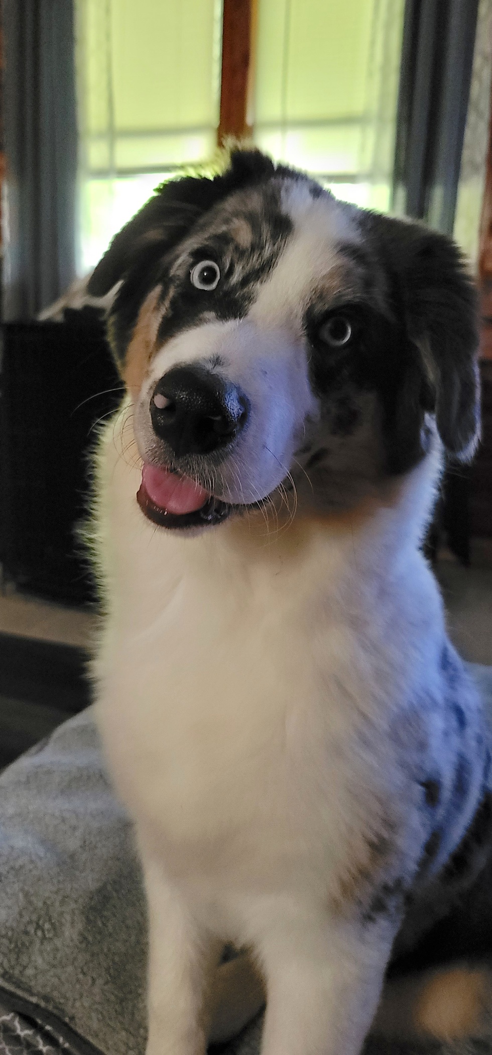Viggo (Vee-go) is an Australian Shepherd who loves nothing more in this world than to play fetch. He could play 23 hours a day if given the opportunity. He loves to please his humans and is a big cuddle bug. I was originally told Viggo was going to be adopted and not available. I was sad at the time but thought maybe it wasn't meant to be. Then about 1.5 weeks later I received a message asking if I was still interested because the people who were going to adopt him never showed up. Absolutely I was still interested!! He was was a 10 hour drive away (one way) in Minnesota. He can make me smile even after the worst day at work. He will always be my baby boy and I love him so❤️.