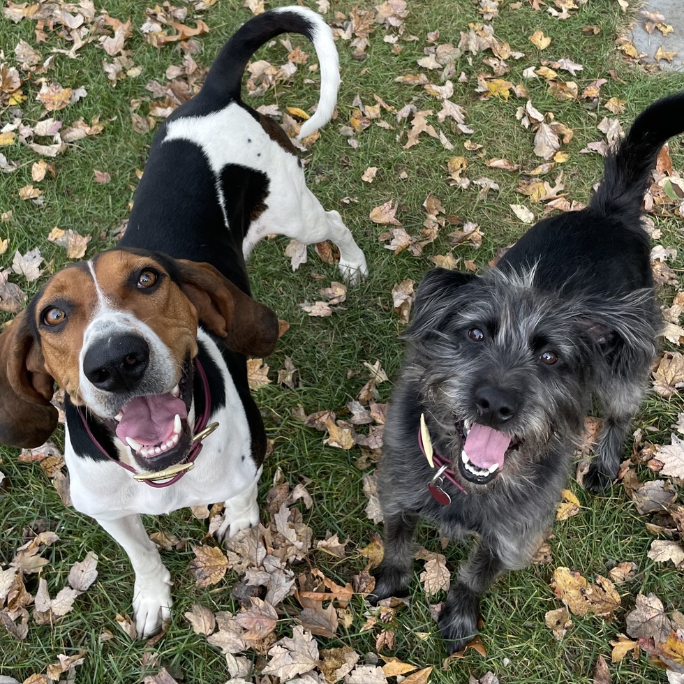 Dewey was adopted from a local shelter in 2023 and Winnie (aka Karen) from DCHS last fall. Dewey tends to be the calm and collected one (outside of the occasional zoomies), and Winnie is a big clown. Nothing makes them happier than some good belly rubs and ear scratches, chasing each other in the yard, car rides, naps, and their favorite toys.