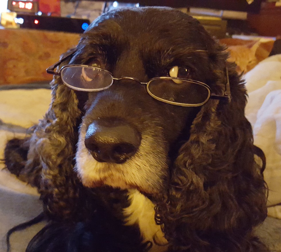 Your Pet's Bio/StoryCota is an 11 year old cocker spaniel. I've had him since he was 8 weeks old. We call him Cota Flying Tongue because he is constantly wanting to give kisses. I've never had a pet that has such human qualities. Smart as a whip and I'm pretty sure he tries to make me laugh. The picture I chose shows his funny side. He couldn't believe I put glasses on him and he was giving me 'the look'.