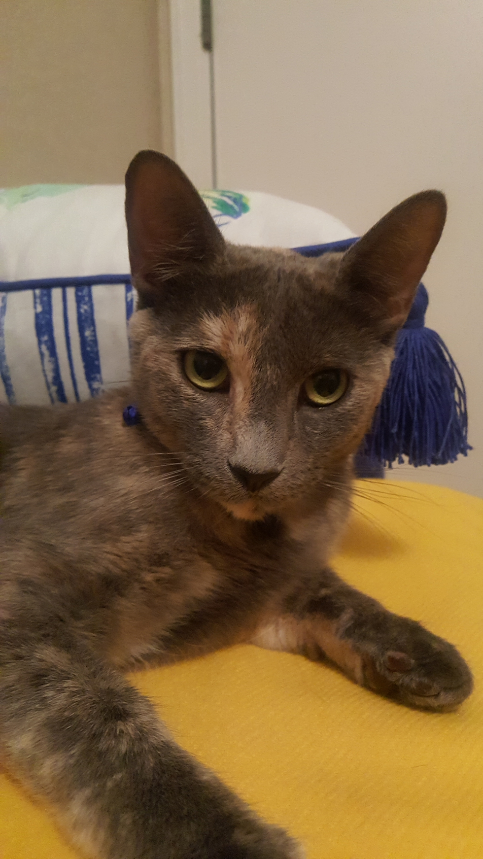Your Pet's Bio/StoryMonet is about a 1 year. She was a stray cat. She spent about 10 days at DDFL. We adopted her on 7/27. She is quiet and friendly. She enjoys her scratching post, likes to jump, loves chasing little balls and playing with her toys.