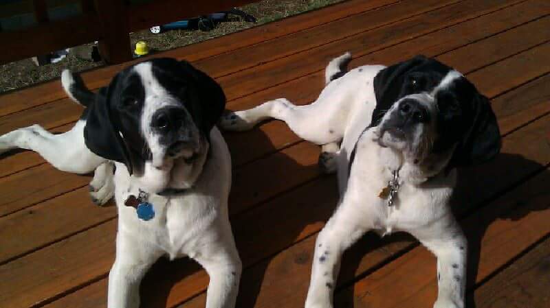 Your Pet's Bio/StoryMeika and Heidi are sisters and best friends. We adopted them as puppies and can't believe they will be 7 this year! They are St Bernard and German Shorthair Pointer mix. They love being together and are so goofy and sweet. They have a feline sister that loves to play and sleep with them. They make friends everywhere they go and get quite a lot of attention in public. We can't imagine life without them.