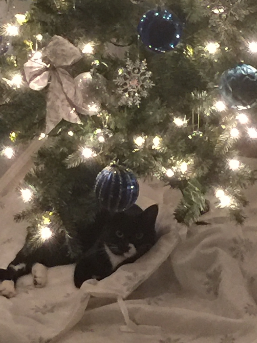 Your Pet's Bio/StoryTina had been adopted and returned. She had been in the shelter longer than the other kittens because she doesn’t like to be held. She has overcome some of her shyness and is very vocal when she wants a treat in the morning. She enjoys laying under the Christmas tree when it is up.