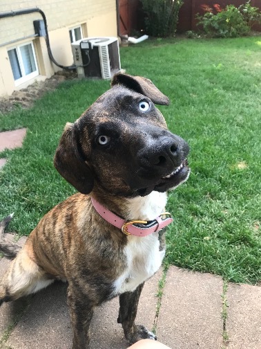 Your Pet's Bio/StoryNym came from DFL almost a year ago after being rescued from Oklahoma. She’s blossomed into a super silly pup with tons of personality. Her dog sister has helped her overcome her shy, withdrawn state and learn the joys of dog toys and belly rubs.