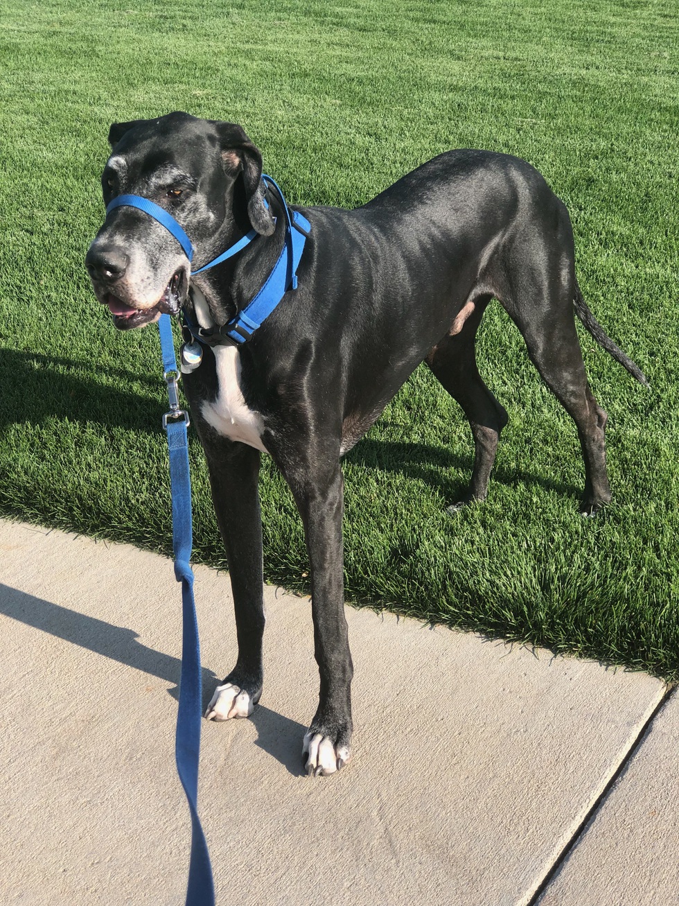Your Pet's Bio/StoryI’m Jake’s Nana now. I saw his picture on the Quebec shelter DDFL webpage on October 23, 2017. My daughter, Audrey, wanted a Great Dane. She adopted him the next day. He was my Christmas/birthday present to her. She lives in DTC and has a dog park next to her building. Everyone knows Jake! I don’t need grandchildren — I have an awesome granddog😊🐶