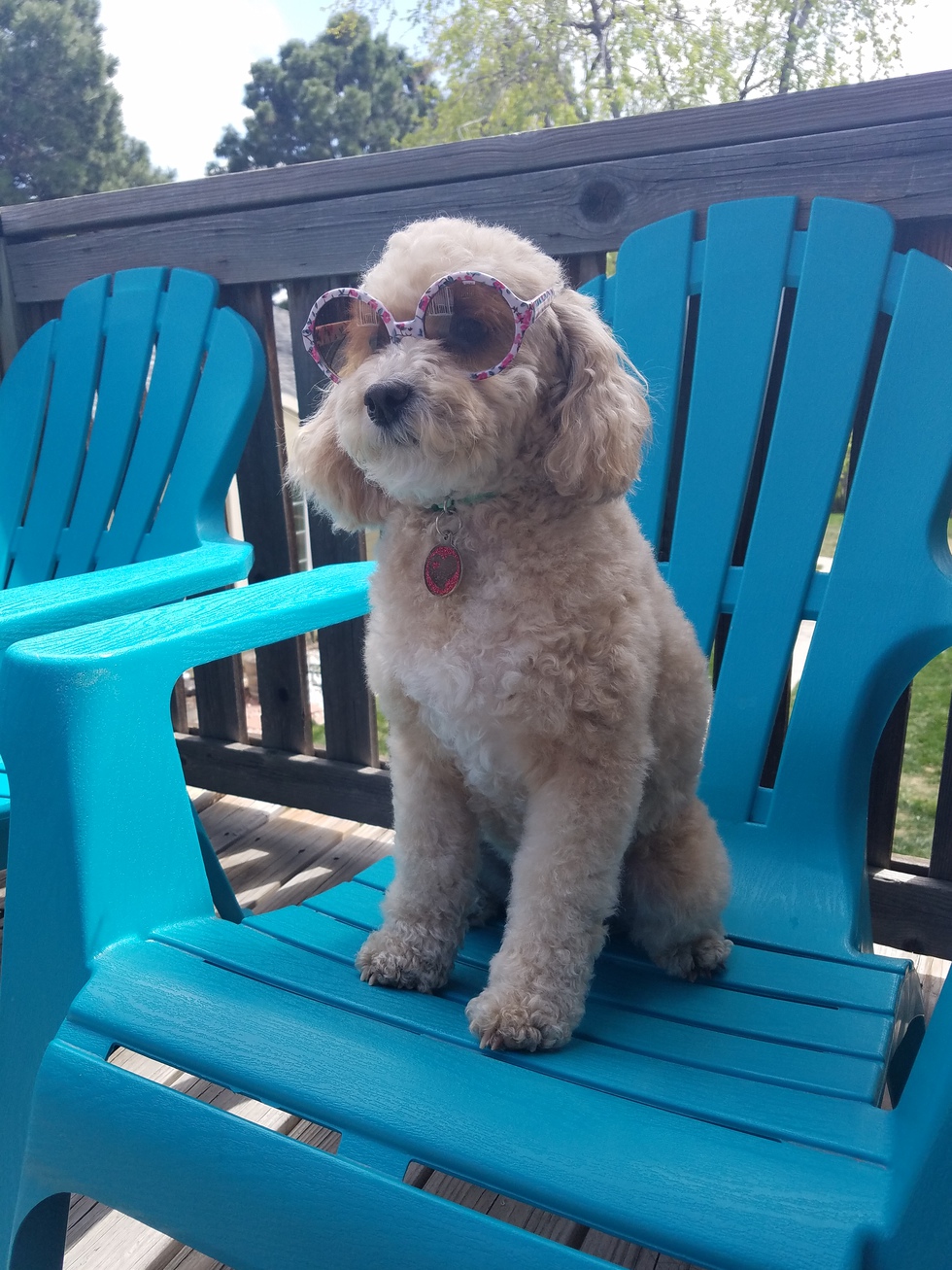 Your Pet's Bio/StoryAthena was surrendered to DDFL in January of 2017. I walked in on January 19th intending to adopt a different dog, but he was adopted before I could get there. Staff suggested I meet with "Ronny" and the moment she walked in the introduction room and jumped on my lap, she was in my heart! I renamed her in honor of my favorite goddess, for strength and wisdom, and she has been pampered ever since! She has 2 toy boxes and her favorites are squeaky animals that she can thrash against the floor and squeaky tennis balls that she even throws herself so she can chase them again! She loves running agility courses at dog parks and tries to herd her mom, grandma, and of course other dogs. She can be found on Instagram at athena_the_fluffy_poodle even though she's not fluffy during the summer.