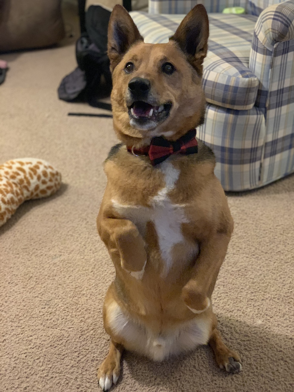 Your Pet's Bio/StoryZeus is almost 5 years old. When he was 1.5 years old he was hit by a car and the vet had to remove his left hip and reattach his right hip back to his pelvis with screws and wire. Although he no longer has use of his back left leg, he doesn't let it stop him and is just as playful and hyper as ever!