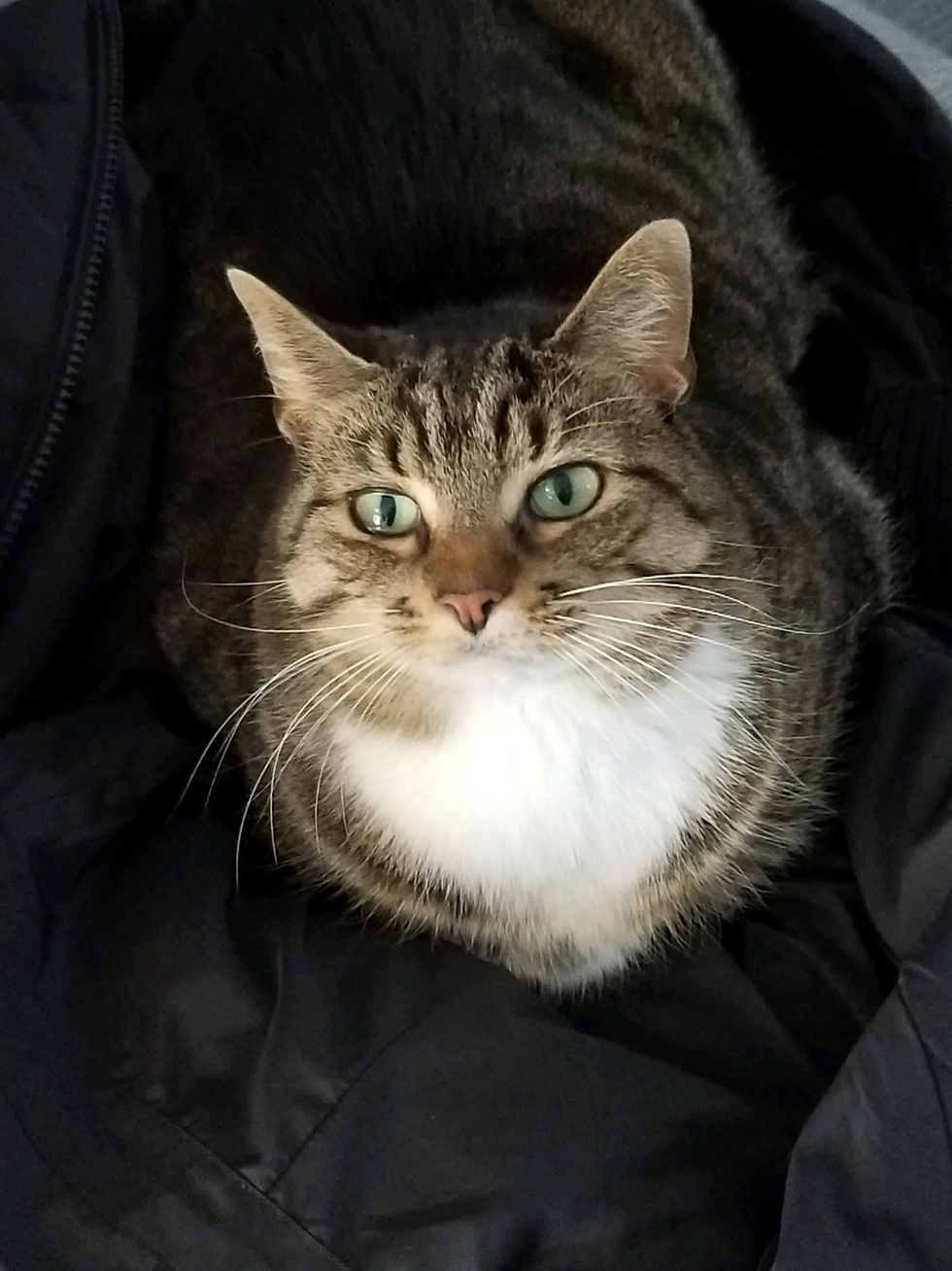 Your Pet's Bio/StoryI adopted Faye at DDFL after visiting with many cats. She is shy. She was in one of the cat rooms curled up in a cardboard box under a bench. Nobody would have seen her, but I read her description and wanted to meet her. We went into a private room, and at first she hid in a corner. After a couple of minutes, she approached me. Next thing I knew, she was purring and brushing up against me, so loving and affectionate. She chose me. The cat in a box under a bench.