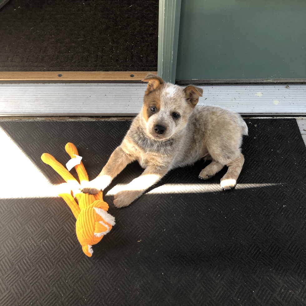 Your Pet's Bio/StoryBlue came to us from Wyoming and is a full blooded Australian Cattle dog (red heeler). He loves to go to the Cherry Creek dog park and play. He is a very smart guy. At 14 weeks he is already well socialized (humans and other dogs) and knows heel, sit, lay down, stay, drop it, and leave it.