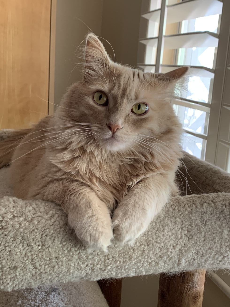 Your Pet's Bio/StoryOur family adopted buff tabby kitten Oliver from the Dumb Friends League at the beginning of kitten season 2016. We changed Oliver’s name to Babka before leaving the shelter since he was such a sweet kitten. This four-pawed friend has brought great joy to our home. He has been such a fun and affectionate pet. From being silly and chasing feet as a kitten to purring and providing lap cat service on snowy days as an adult cat, Babka has always fit perfectly into our family. He has a loyal Instagram following: @babka_the_rescue_cat. Recently, we harness trained Babka so he can safely go outside with us. It’s been fun supervising all of his adventures.